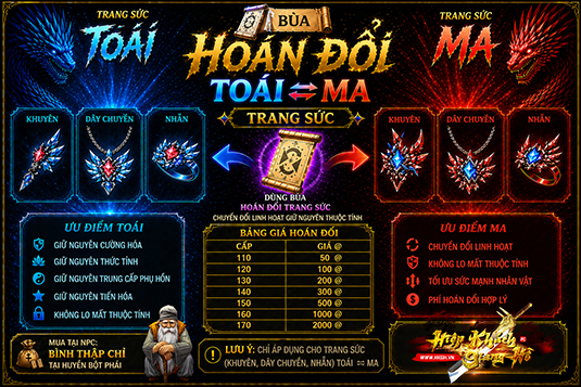 🔥 TIÊU ĐỀ ✨ TÍNH NĂNG MỚI: HOÁN ĐỔI TRANG SỨC TOÁI ⇄ MA ✨ 📝 NỘI DUNG GIỚI THIỆU Hiệp Khách Giang Hồ chính thức ra mắt tính năng Hoán Đổi…